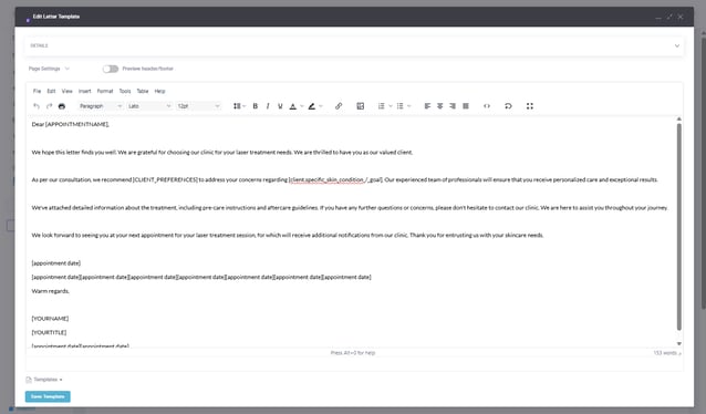 Letter Templates in Pabau help you create professional, consistent, and branded communications for your clinic. They ensure every letter follows your preferred style and includes all the necessary details.