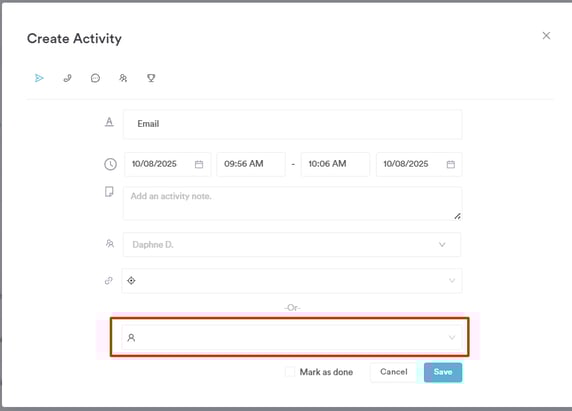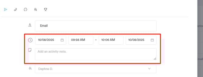 Next, you can select the due date and time for this activity and add an activity note with more details if needed.