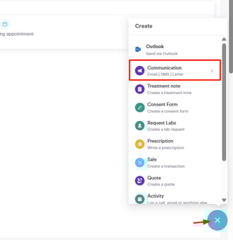 Click the "Communications" option. This will reveal the option to write a letter to the client.