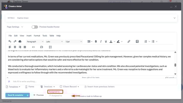 When creating a new letter for a client, you will see a dropdown labeled “Assigned to.” Click the dropdown to view a list of all active users in alphabetical order.