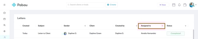 Here you can see all the saved letters. A column labeled “Assigned to” appears to the right of the Created by column. This column displays the name of the user assigned to each letter. You can filter the list by assignee to quickly find letters assigned to a specific team member.
