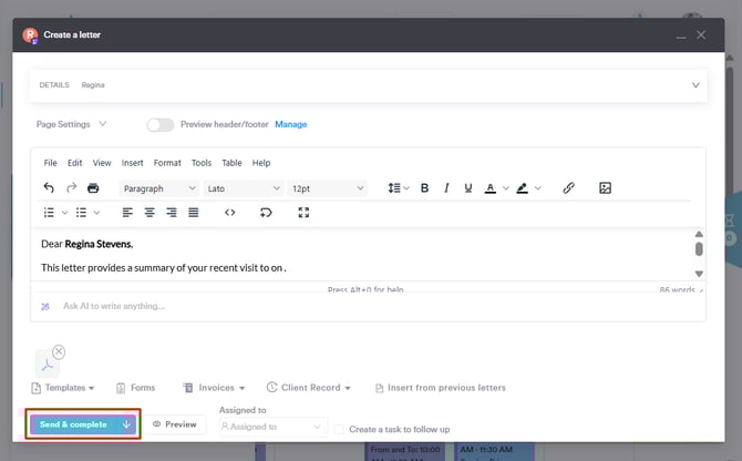 Once you've compiled the letter, click the "Send & Complete" to finalize.