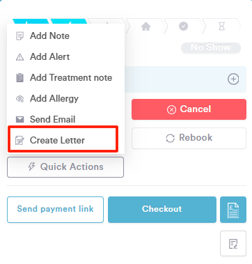 Here you'll find the "Create Letter" option, click to open the Create Letter modal.