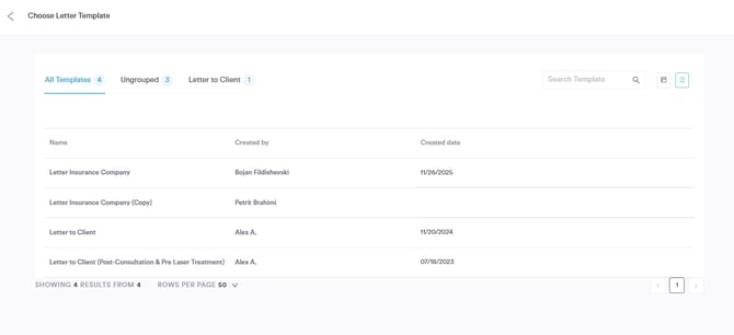 A pop-up window will appear, allowing you to choose from any of the templates you've previously created in the system before proceeding to write the letter.