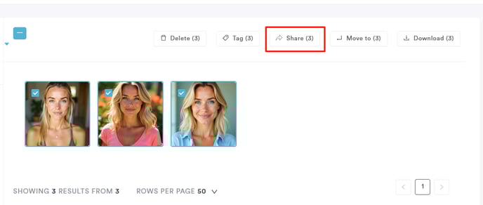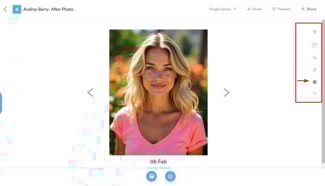 Once you view the full-size image, you’ll see a list of available actions in the top right corner of the screen. Navigate to the 'Share' option to share the image.