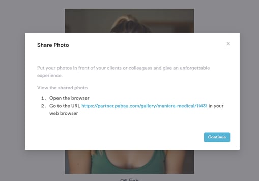 Opens a pop-up providing a link to the photos and a preview in the Pabau Gallery.