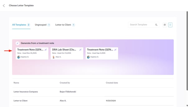 In this article, we will show you how AI can instantly draft professional letters using your treatment notes and recently used templates.