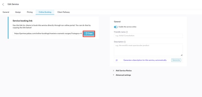 In the Online Bookings tab, you’ll find the booking link at the top left corner of the screen. Simply click the "Copy" button to copy it.