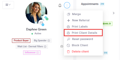 Responding to GDPR data requests can be time-consuming, especially when information is spread across different parts of the system. The new Print Details feature streamlines this process by generating a complete, downloadable report of all key client data in just one click. This includes communications, consent forms, personal details, and more, ensuring nothing is missed and making it easier than ever to provide clients with a full data export securely.