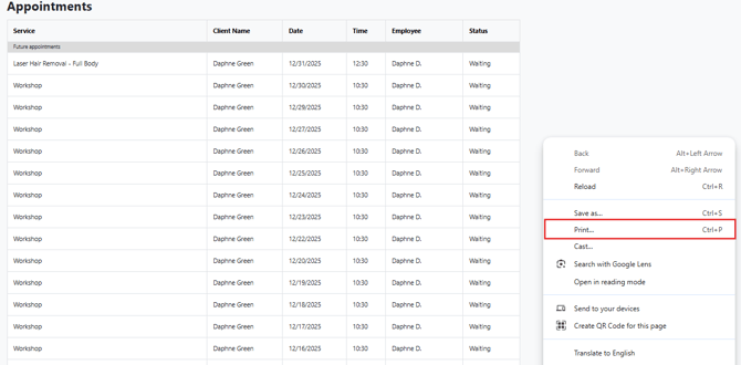 Alternatively, you can press Ctrl + P (or Cmd + P on a Mac) for a quick way to open the print dialog and print the report.