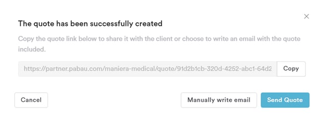 Once you create a quote, a pop-up will appear with a link you can copy and share with the client.