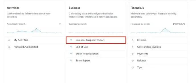 Under the 'Business' section, you will find the Business Snapshot pre-created report. Click on the report name to continue.