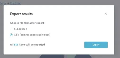 Once you click Export, a window will pop up, and you can choose to export the data as an Excel or CSV file.