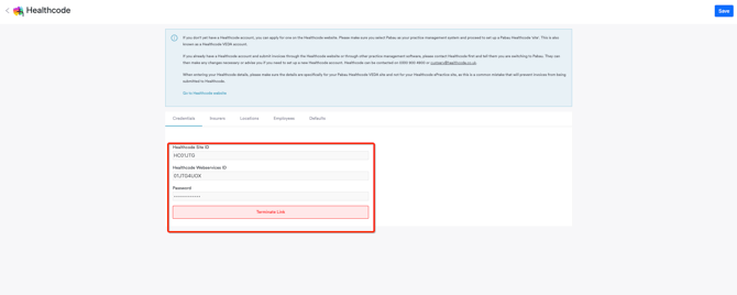 Visit Healthcode's website to create a new account or adjust your existing account. You may need to apply to be recognised by the insurance companies. Once you have your site ID, username, and password from Healthcode, you can enter them securely into Pabau to begin sending insurance invoices electronically.