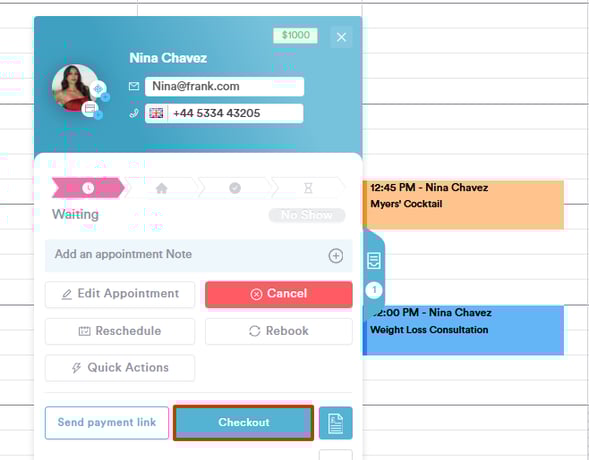 In the appointment menu, click Checkout. This will take you into the Point of Sale (POS) with the client and their booked services pre-populated.