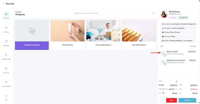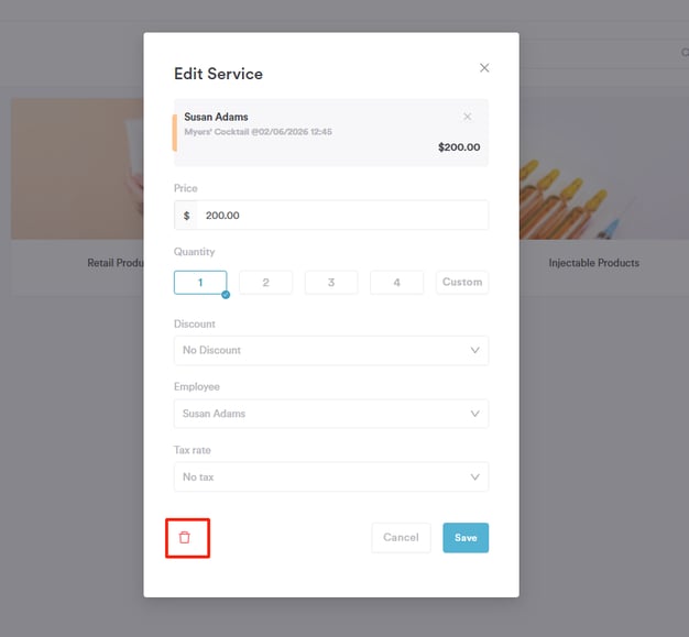 In the POS cart, you’ll see a list of all booked services for that day. To invoice only one appointment, click the extra service(s) you don’t want to bill for to reveal more options.