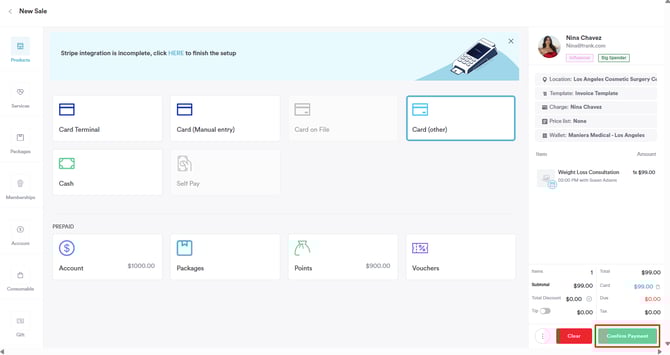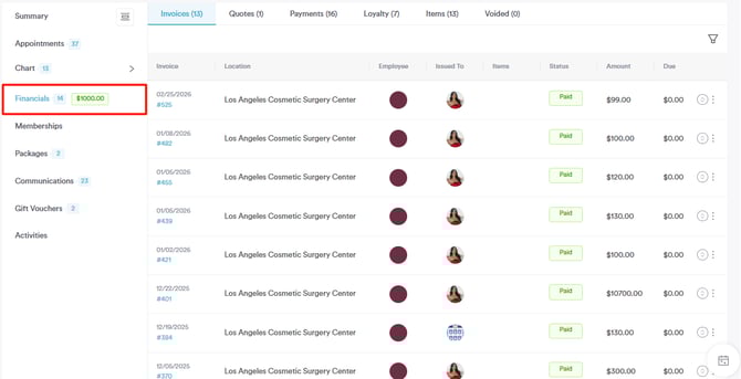 After payment is complete, you can view the newly created invoice by clicking the client’s name in the POS or by opening their Client Card using the search bar at the top of the screen.