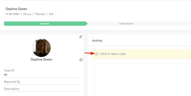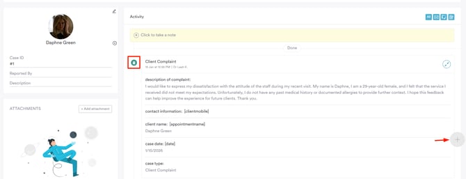 To add notes about the case, click the plus sign (+) on the client’s Activity screen and start entering any relevant information.