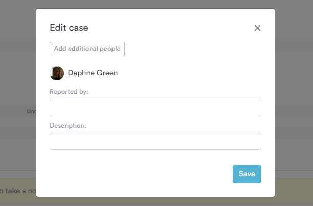 To edit case information, click the pen icon in the top-right corner of the client’s image, and a pop-up window will open.