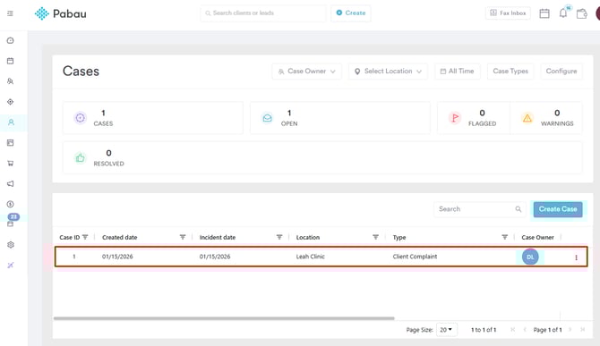 When you access the Cases page, you’ll see all cases created so far. Click on any case to view its details.