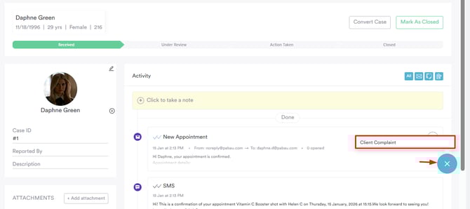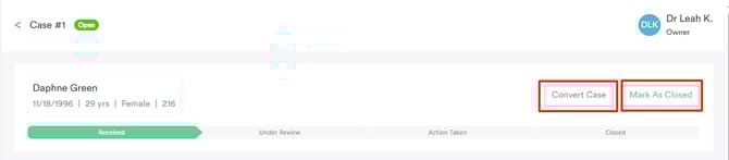 Mark as Closed: Click this when the case has been fully resolved. This updates the case status, ensuring it’s no longer active but still saved for records and reporting.