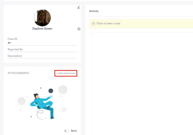 When you scroll down, you’ll find the option to add attachments related to the case on the left-hand side.