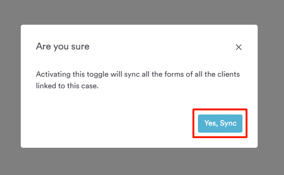 A confirmation prompt will appear. Click 'Yes, Sync' to finalize and automatically attach the forms to the case.