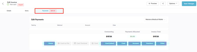 Once you’re viewing the invoice details, go to the Payments tab to manage and record payments.