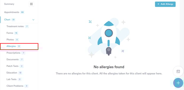 This article covers the process of adding allergies to a client card.