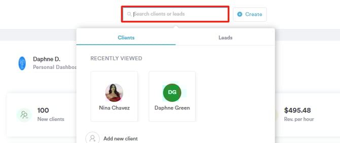 Start by logging into your Pabau account using your login credentials. Then, navigate to the top of the screen and search for a client using the search bar.