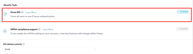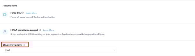 Once you have enabled Two-Factor Authentication (2FA) for your Pabau account, you can view the option to choose how you receive your verification code at login.
