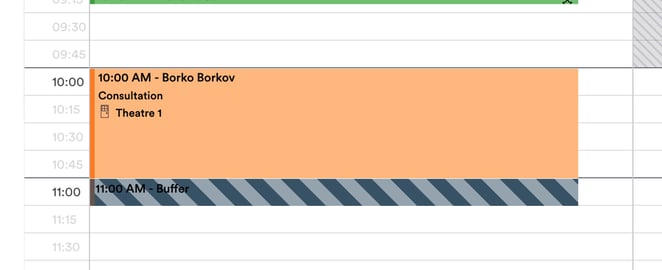 Buffer time is a setting that automatically inserts a set number of minutes between appointments. When enabled, Pabau creates a Block Out immediately after each new appointment, preventing the next booking from starting too soon. This is particularly useful for clinics where practitioners need time to clean a room, document notes, or simply take a short break between clients.