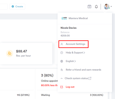To begin, log into your Pabau account and locate your avatar in the top-right corner of the screen.