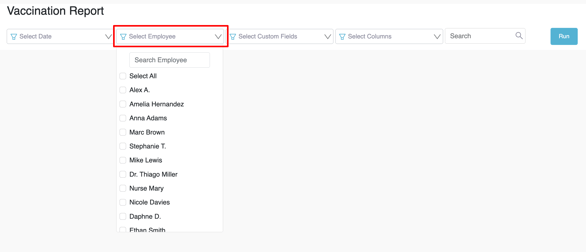 You can further personalize the report by selecting which columns you want to display. This helps you focus only on the data that matters most, such as vaccination type, batch expiry date, or employee name.