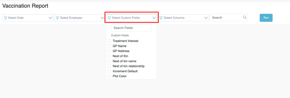 If you would like to add more information to your report, click Select Custom Fields. Here, you can choose additional data such as GP Name, GP Address, Next of Kin, or Treatment Interest. These fields allow you to customize the report based on the information most relevant to your clinic’s needs.