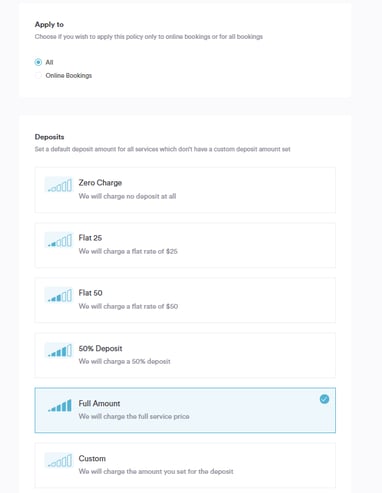 Customizable Rules — Set different policies based on service type, staff member, or client category.