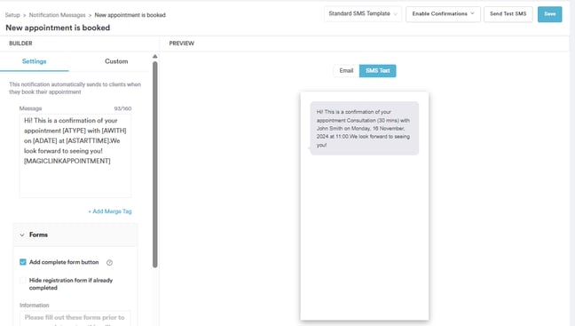 Personalized Messaging — Tailor messages to each client using merge tags.