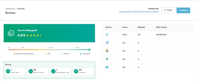 Reviews in Pabau help clinics collect, manage, and showcase client feedback, boosting credibility and attracting new clients. Positive reviews can strengthen your online reputation and help your team understand areas for improvement.
