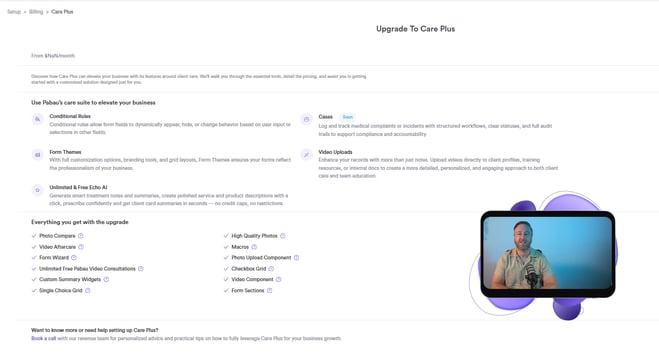 Care PLUS is Pabau’s premium add-on designed to elevate patient care by offering advanced tools for communication, documentation, and clinic workflows.