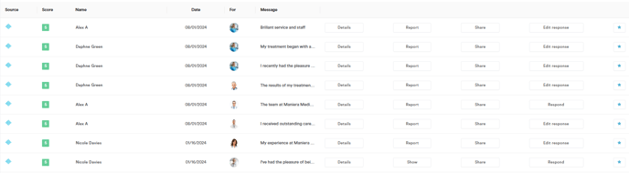 For Pabau Reviews, you have the flexibility to hide them as needed. Additionally, you can perform various actions such as sharing reviews on Facebook, Twitter, or LinkedIn, responding to reviews, or marking them as favorites.