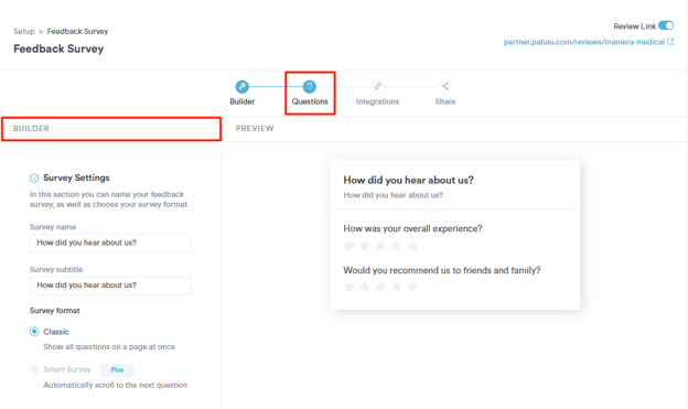 In this article, we'll guide you through the process of customizing your feedback survey using the Feedback Survey Builder in Pabau.