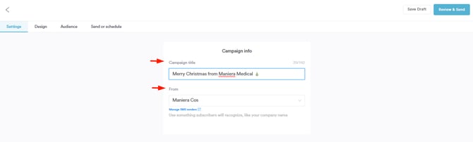 Begin by giving your campaign a clear purpose and identity. In Pabau’s Settings tab, enter a descriptive internal Campaign Title that reflects the goal (e.g., “April Appointment Reminders” or “Summer Promo SMS”).