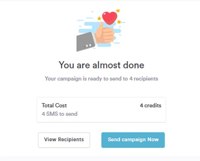If you want the message to go out right away, choose Send Campaign. Immediate sends are useful for time-sensitive messages like last-minute appointment availability, urgent reminders, or flash offers. Make sure everything is correct before hitting send, including message content, links, and audience selection.